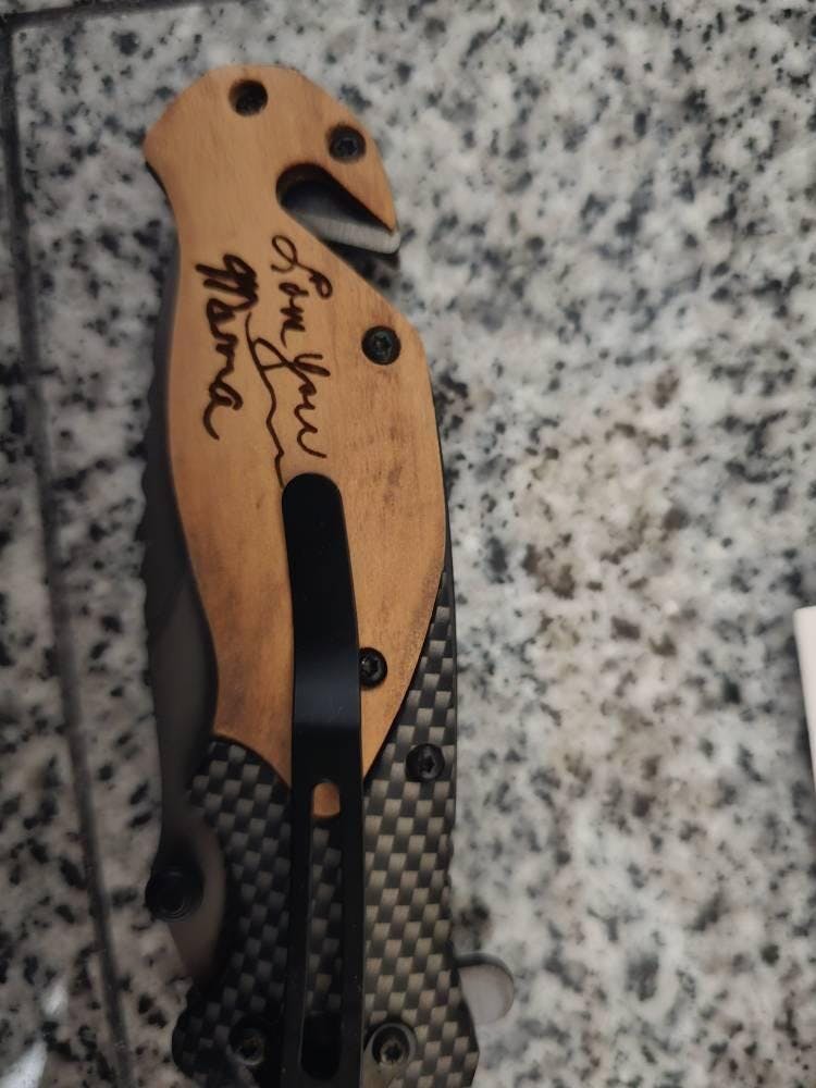 Personalized Handwriting Engraved Pocket Knife – Memorial Quote Keepsake